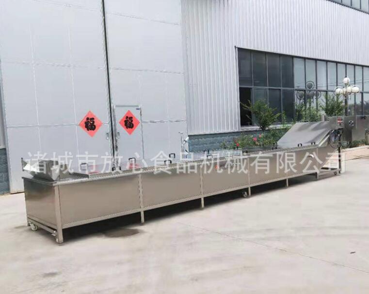 甜玉米蒸煮機連續式蔬菜蒸煮漂燙線 果蔬殺青護色機是我公司專做的一款蒸煮、漂燙、殺菌(65-95℃)設備,是果蔬加工、食品殺菌消毒,速凍、烘干、脫水、凍干、清洗去須及其他深加工預處理不可缺少的設備。具有鏈板和鏈條送進出料、效率高等特點。漂燙水循環裝置結構簡單