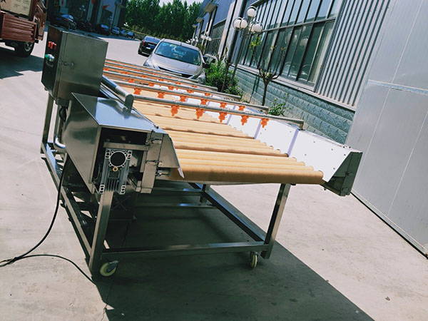 本機適合于草莓、土豆、胡蘿卜、芋籽、等不許損傷表皮的球狀(圓柱狀)果蔬,下部采用毛刷將物料表面刷干凈,上部有高壓噴淋清洗,前段采用循環水,后端采用凈水,果蔬清洗徹底且節約用水。